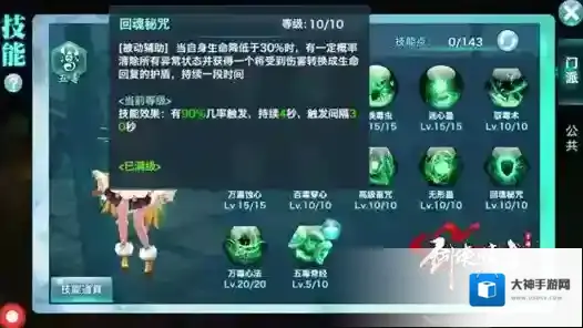 满级效果,有百分之90的几率触发,持续4秒,间隔30.唯一保命技能增加护盾,护盾期间受到伤害均能转换成生命,大大增加五毒的生存能力,无一是雪中送炭。