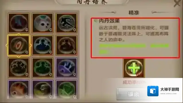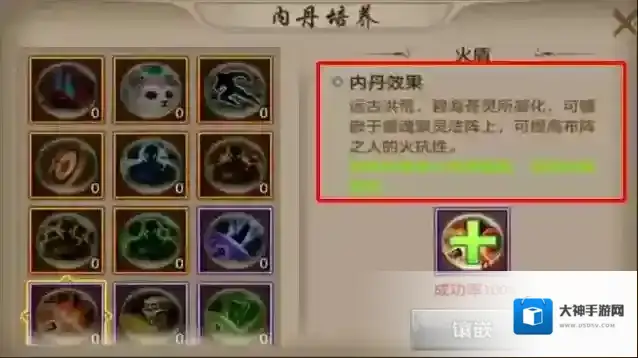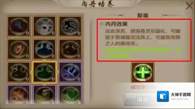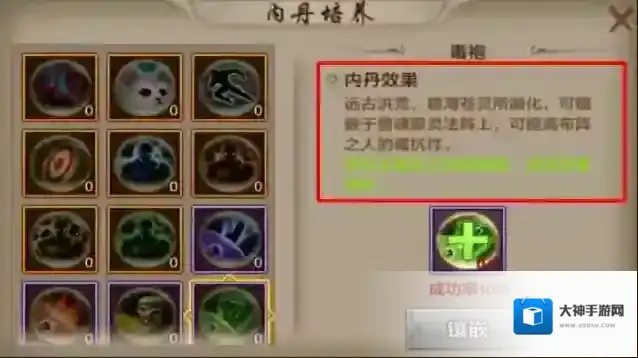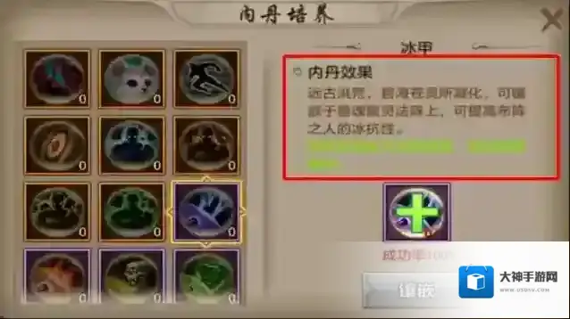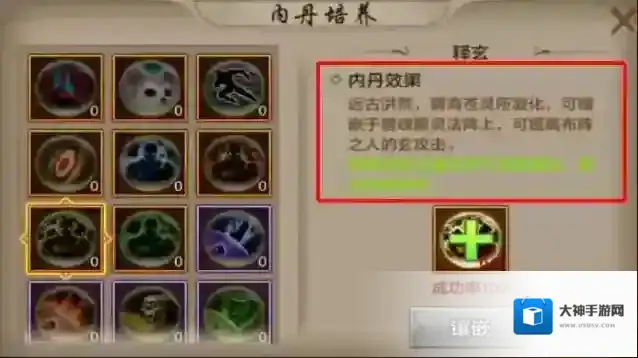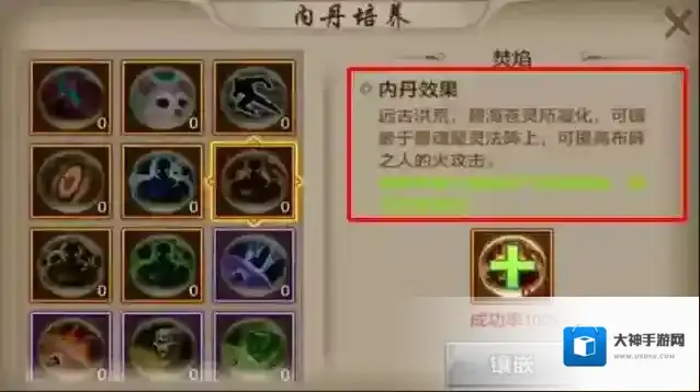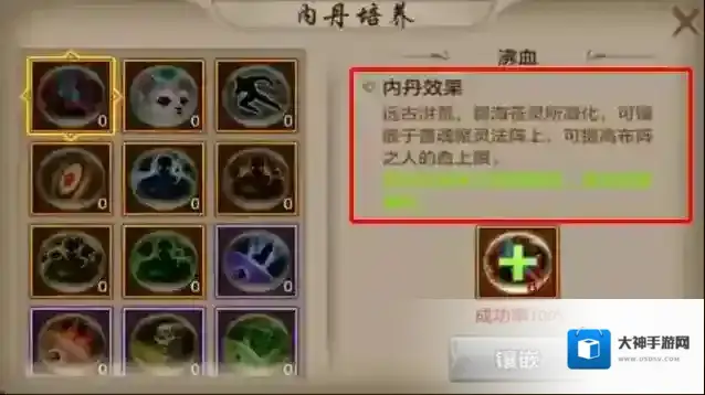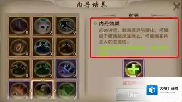 关于内丹的介绍,内丹获取的途径其中一种为在游戏商会中购买。