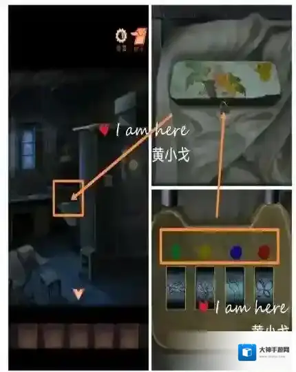 12.点击床上的文具盒,根据上面的颜色和挂历、窗户及镜子上的图案的颜色,调整盒子上的锁(绿色瓢虫、黄色、蓝色脚印、红***)