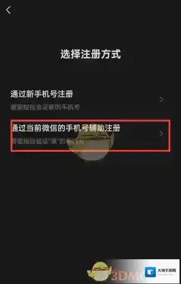 4、点击后在弹出的选项中点击注册新账号,最后在本页点击通过当前微信手机号辅助验证,然后观看后面的提示注册即可。