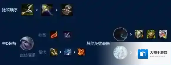 优先做出小炮与茂凯的的装备。最后再补出佛耶戈的装备。小炮羊刀与轻语必备,第三件无尽、巨杀、杀人剑均可。
