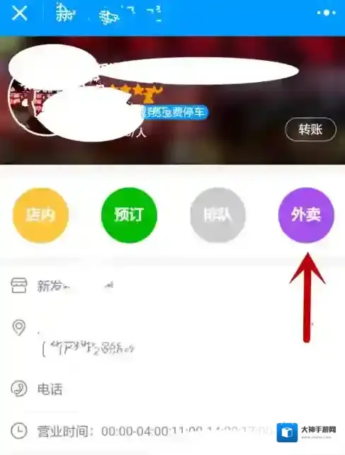 5.进入店内之后,选择外卖字样。可以看到这家店的详细地址和详细联系电话以及营业时间。还有上商家的环境。