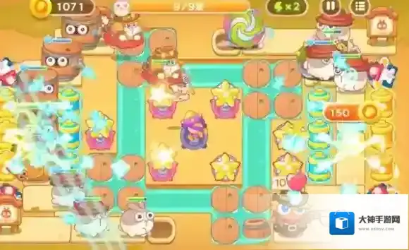 3、这时候会出现大量飞行兔兔的进攻,玩家得加强火箭的输出能力,在火箭筒庞放置两个星星装置。
