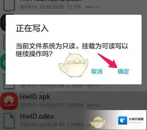 7、此时re管理器会提示当前文件系统为只读,挂载为可读写继续操作,我们点击确定就可以了。