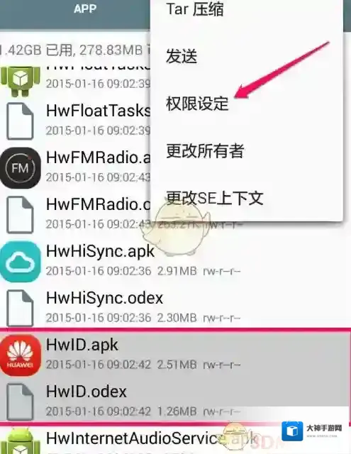6、选中想要删除自带软件的两个文件以后点击右上角的选项,然后选择权限设定功能。