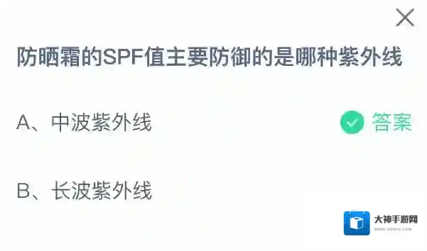 防晒霜的SPF值主要防御的是哪种紫外线
