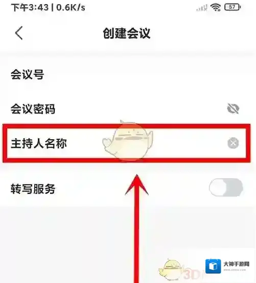4、还是在创建会议这个页面中,在该页面中我们输入好主持人名称。