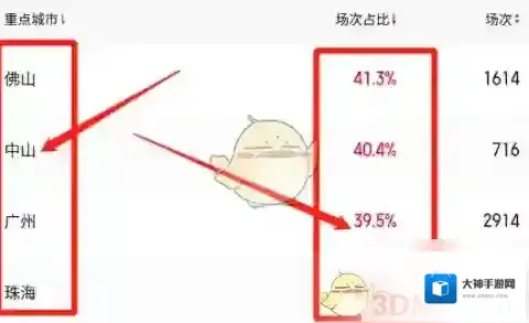 打开猫眼专业版APP,进入票房页面,点击顶部的“排片上座”图标,然后选择“城市排片”选项。接着,选择要查看排片率的日期,并滑动选择感兴趣的电影海报图。在列表中,用户即可清晰地查看到各城市的影院排片情况以及对应的上座率。