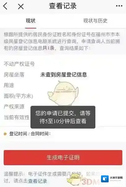7、点击“生成电子证明”即可获取已加盖电子印章的查询证明