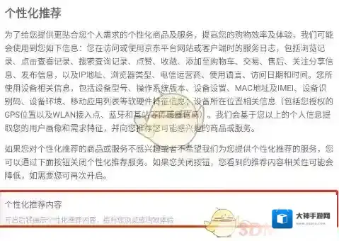 5、打开如下图界面,选择个性化推荐内容选项,点击关闭后面的开关,这样就关闭京东小家app的个性化推荐内容了