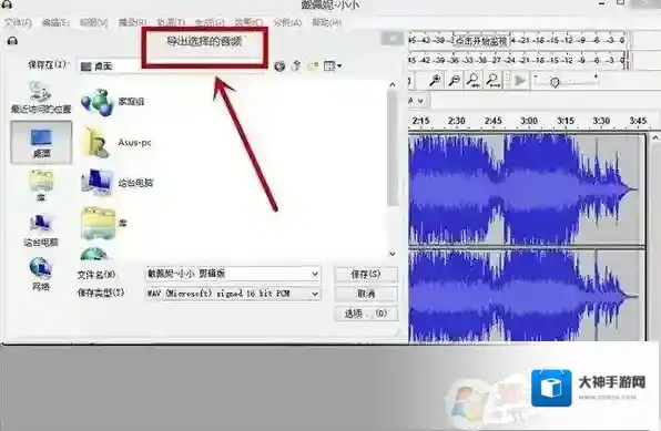 7、点击了“导出选择的音频”后,在对话框中更改剪辑了之后音频的文件名;