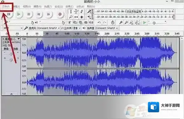 2、在“文件”菜单栏中,打开自己想要剪辑的音乐,此处打开的是mp3文件“小小”;