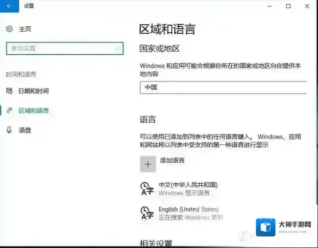 方法二:添加一个英文语言1、打开设置,进入区域和语言;2、在左边找到区域与语言设置点击打开,然后在右边找到添加语言的选项点击打开;