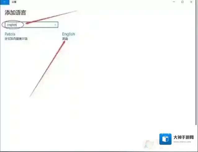 4、左键输入框输入English,然后按Enter搜索,找到English点击打开;