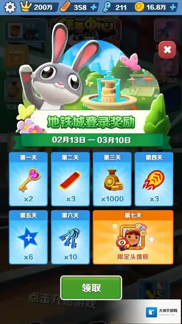 地铁城版本期间,累登7天,可获得微博联动道具「微博滑板」以及「微博专属头像框」