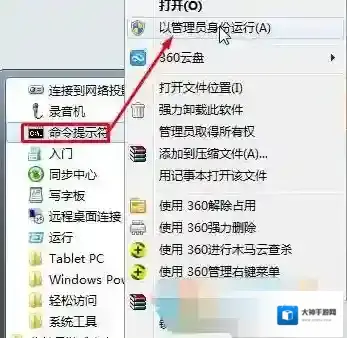 2、找到“命令提示符”,单击右键选择“以管理员身份运行”;