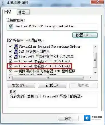 6、这时我们可以打开本地连接属性界面,双击 internet 协议版本4 (TCP/IPv4)进行设置;
