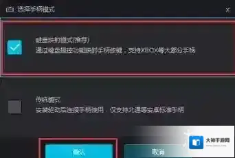 2.在选择手柄模式界面中选择“键盘映射模式”,并点击“确认”按钮