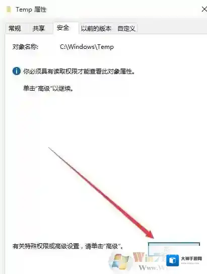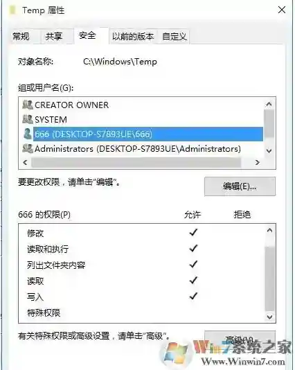 5、这时会打开temp的高级安全设置窗口,点击“所有者”后面的更改按钮