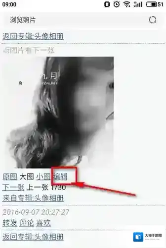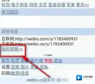 在详细资料中一直拉到页面最下端,会有我的相册,打开相册。