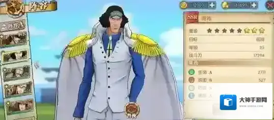 海军三大将之一,擅长属性伤害。闪闪果实能力者,拥有超高的光属性伤害。拥有极高的闪避率,暴击率属性随速度提升。