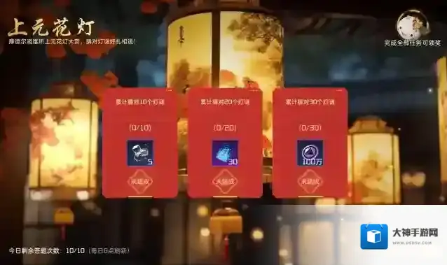 花灯谜面引思量,竞猜答案乐无穷。摩得尔避难所的龙灯下悬挂着谜面,答对答错都有奖,答对足够数量将会获得元宵节发饰外观团团。