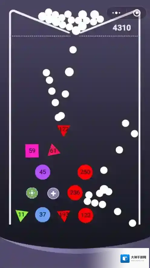 游戏前期难度不大,在游戏前期玩家尽量快速去让弹球数量增加,让弹球变大即可。由于数字色块数字较小,注意瞄准位置最高的色块进行击打就可以了。关键是要到后期去多得分。