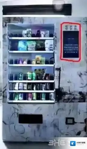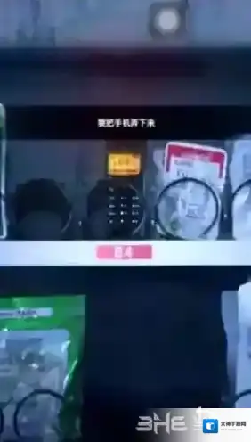 11、输入之后开启饮料机,我们需要再输入两个密码才能拿到手机。先将卡住手机的零食拿出来。