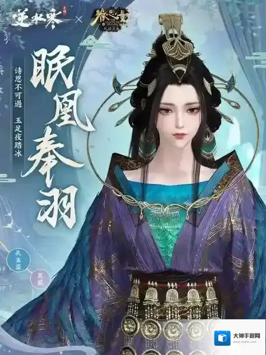 眠凰奉羽诗思不可遏,玉足夜踏冰。上古灵凰奉眠原本恣意游弋于世间修行,因机缘巧合误入思量岛,是思量岛长老之一,性格高深莫测波澜不惊。其同款时装眠凰奉羽优雅华贵,以青蓝色与紫色为主,带来神秘深邃的神族气息。