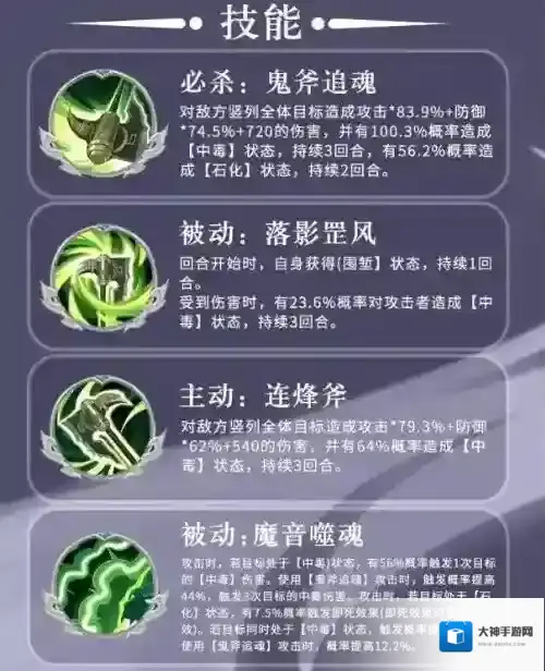 特点强大的被动技能,秒杀石化即死是最大的特点