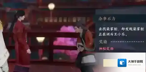 2、询问完成之后我们就可以看到梁婆娘和王小乐又一次开始对话,我们再次接取任务;