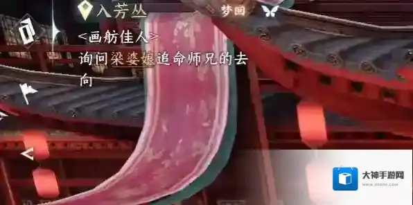 1、我们直接点击任务树中的梦回,任务会变成一个新的任务开始,我们需要找到梁婆娘进行询问(任务位置没有发生变化);