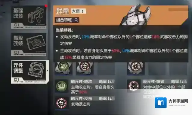 1.新增「元件调整」功能,指挥官可在「武器改装」-「元件调整」中,为进阶武器配置、调整元件;