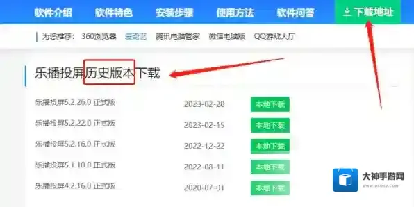 大家可以点击软件,页面跳转后下载最新版即可,如需下载老旧版本,可在网页跳转后,点击上方下载地址或下拉页面至底部,即可看到乐播投屏过往版本,有版本号标注,大家按需下载即可。