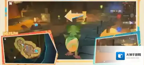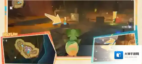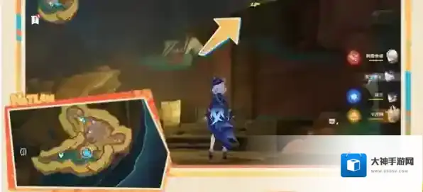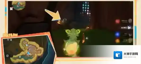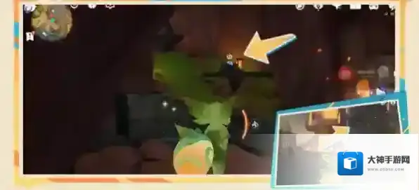 5、之后击败背后的愚人众,向南进入洞窟;来到下图这个位置,在右上方的平台附身匿叶龙。