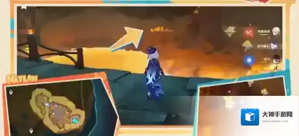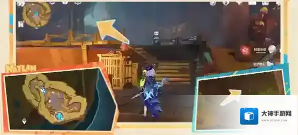 1、来到地图祖遗庙宇的东边的传送锚点,然后从裂缝处深入洞窟,再从洞口跳下去,击败下面的愚人众,开启宝箱获得钥匙,使用钥匙开启运龙车救出匿叶龙。