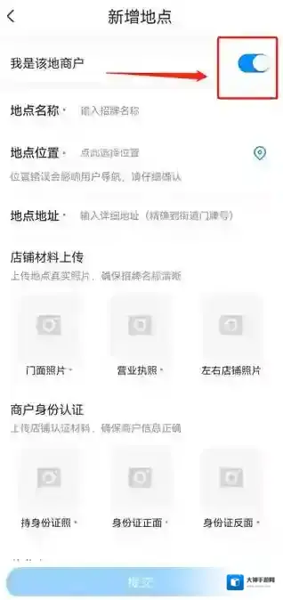 5、进入后先将我是该地商户右侧按钮开启,然后根据下方要求填写内容。