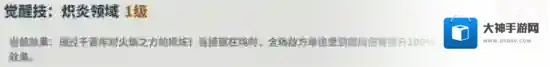 描述:通过千百年对火焰之力的修炼!当提亚在场时,全场敌方单位受到燃烧伤害提升100%,并减少50%受到治疗效果。