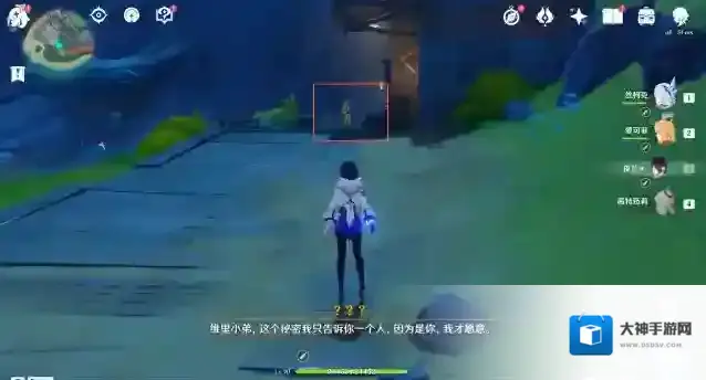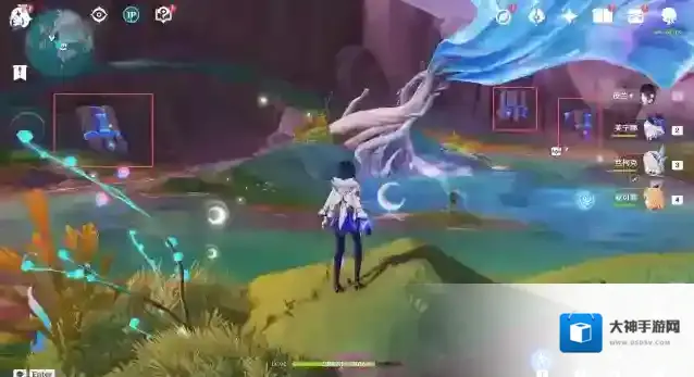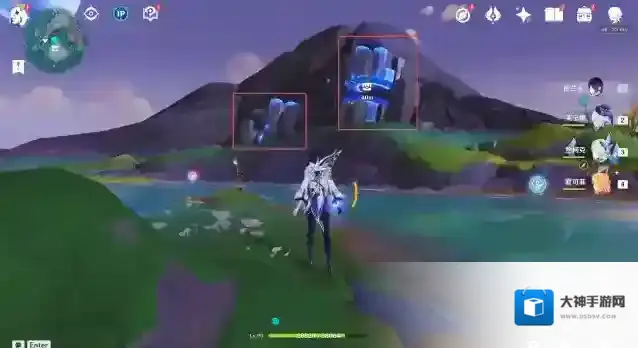 获取方法:这个地方原本是有一个神瞳的,然后小鹿的头上有几个小精灵,接触过之后在图示的身后会出现极光滑轨,上去宝箱就会出现,个华丽宝箱