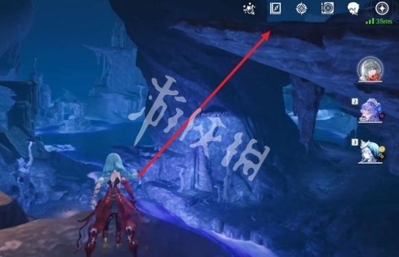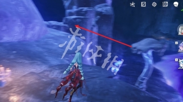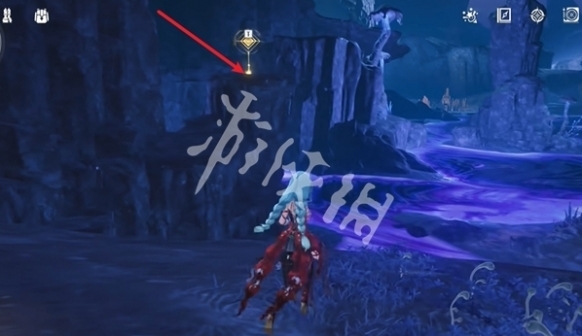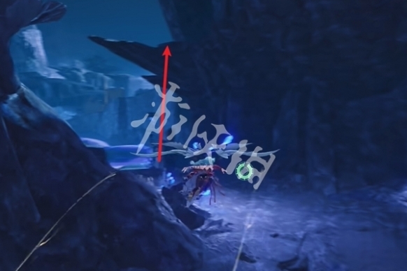 16、过来后,朝着箭头方向飞,飞的过程中注意看右边,即可看到第九个石龛。