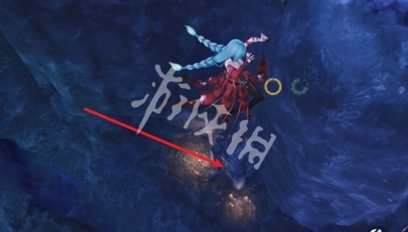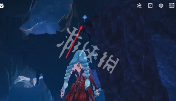 18、飞到图中的位置,下落,即可看到第十个石龛。