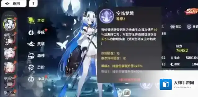 而空临梦境这个技能更注重群伤,当修普诺斯的生命值首次低于40%且未阵亡时,她就会激发自己的潜能,此时依靠这个潜能效果就可以对敌方全体造成375%攻击力的物理伤害,这种保命反打的设定既保证了生存能力,又能在残血状态下有足够的持续输出能力,而随着技能升级,最终伤害是可以达到450%的,所以可以配合队友的控制或易伤效果来使用,这样的三个主动技能相互配合就可以带来足够的输出数值啦。