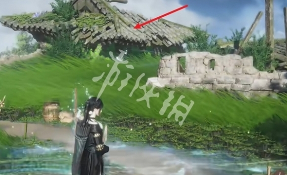 13、拿完后,调整视角,可以看到前面房子的房顶上有个宝箱。