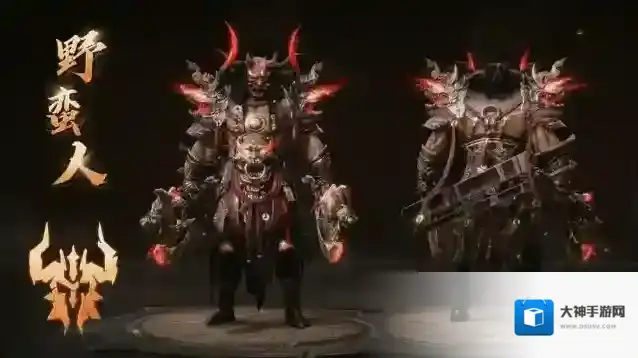 野蛮人面具上夸张的牛角火光熊熊,挥舞的双斧赤红火星毕剥作响,胸腹间兽首盔甲怒目圆睁,身后的桃木剑时刻准备破鞘而出。