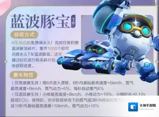 为了让玩家们更快融入到这个梦幻的庄园世界,游戏还推出了丰厚的福利活动。从6月26日开始,玩家们就可以通过完成任务来获取“蓝波豚宝”T车的碎片,收集满1000个碎片后,就能解锁这辆永久的赛车。这辆T车外观可爱,性能不凡,是玩家们不可错过的福利。