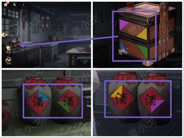 5.点击食盒,根据[客栈大堂]和[冷家村街道]上的酒坛线索,调整密码锁