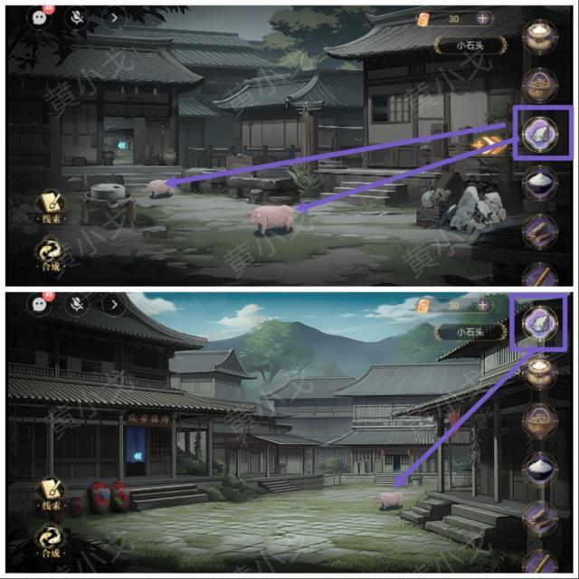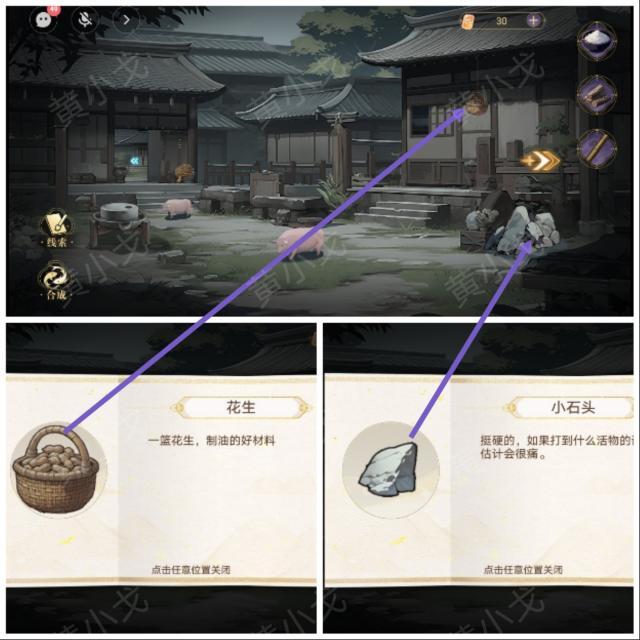 ♦️出现一个妇人,与她对话。然后回后院拿石头,再去街道扔小猪,吸引老板出去。