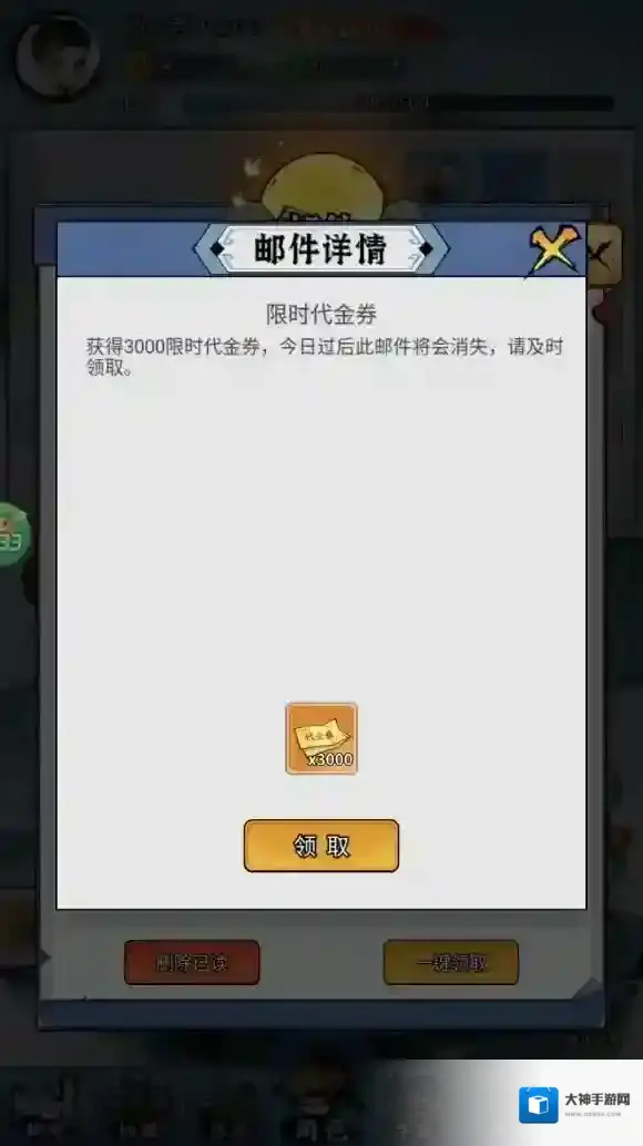 3、去邮件当中领取每天送的代金券。