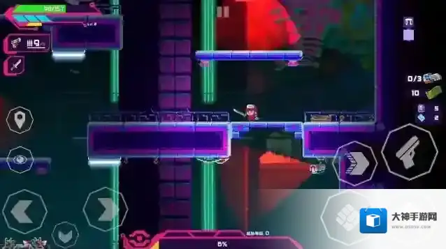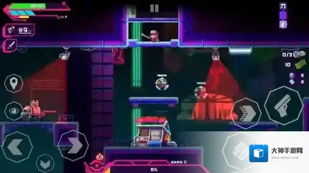2、正式开始后左边控制角色的移动和互动,右边是攻击、跳跃、冲刺和射击按键。