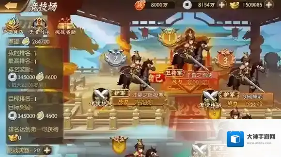 在竞技场中,每天晚10点,系统会根据玩家当前的排名发放声望和铜钱奖励,排名越靠前,奖励越多。